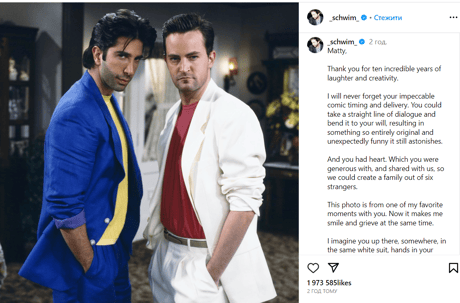 Создал семью из незнакомцев — Дэвид Швиммер чувственно попрощался с Мэттью Перри