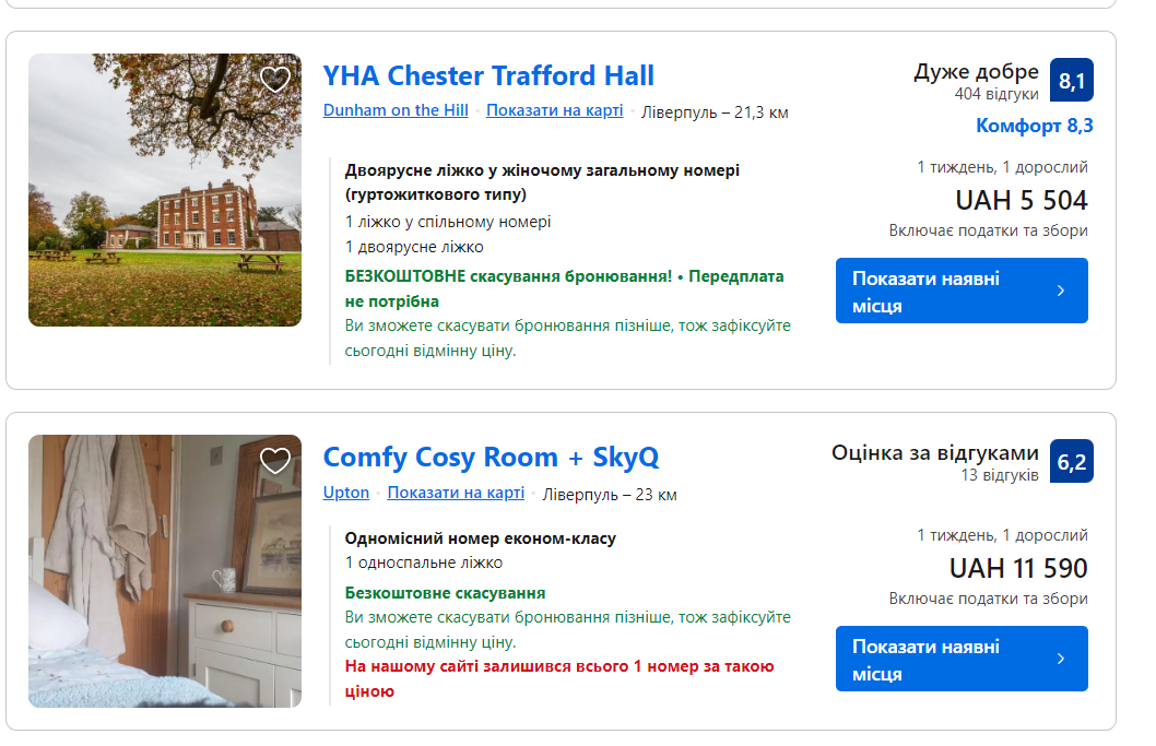 Впрочем, есть и более экономичные варианты — хостелы и гостевые комнаты в 20 километрах от города. Поэтому придется добираться до города общественным транспортом, или, как вариант, арендовать велосипед . А может, вам его любезно предоставят владельцы апартаментов. Есть варианты всего за 5500 грн за неделю в одном из хостелов неподалеку от центра Ливерпуля.