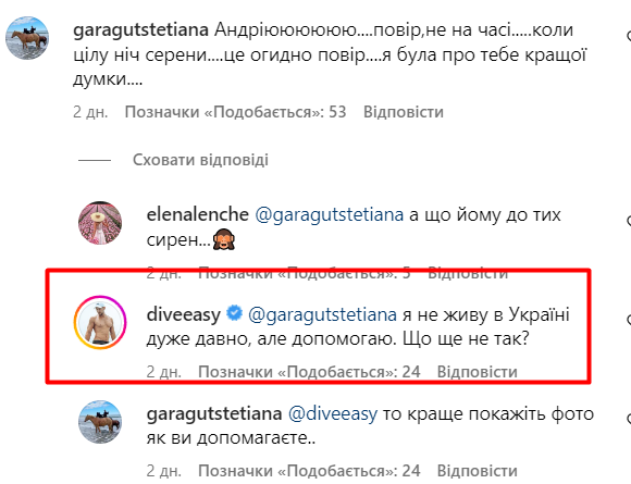 Даже лояльные к ЛГБТ-сообществу подписчики Андрея возмутились подобными откровениями на публику, в то время как на Родине бизнесмена продолжается кровавая полномасштабная война. Хветкевич все же ответил на один из комментариев.