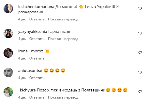 - Была на твоем концерте до полномасштабной, очень понравилась. Но сейчас петь песни с яхты на русском — это позор, неужели все это нельзя было спеть на соловьиной???