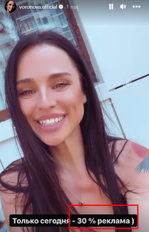 "Хтось вирішив саме мені робити рекламу, а не Мішиній (акторці Ксенії Мішиній. — Ред.) та ще 30 блогерам, які знімали відео", — сказала Воронова.