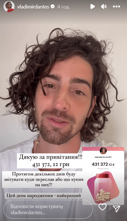У сторіз свого Instagram Володимир розповів, скільки йому задонатили підписники та небайдужі користувачі соцмереж.