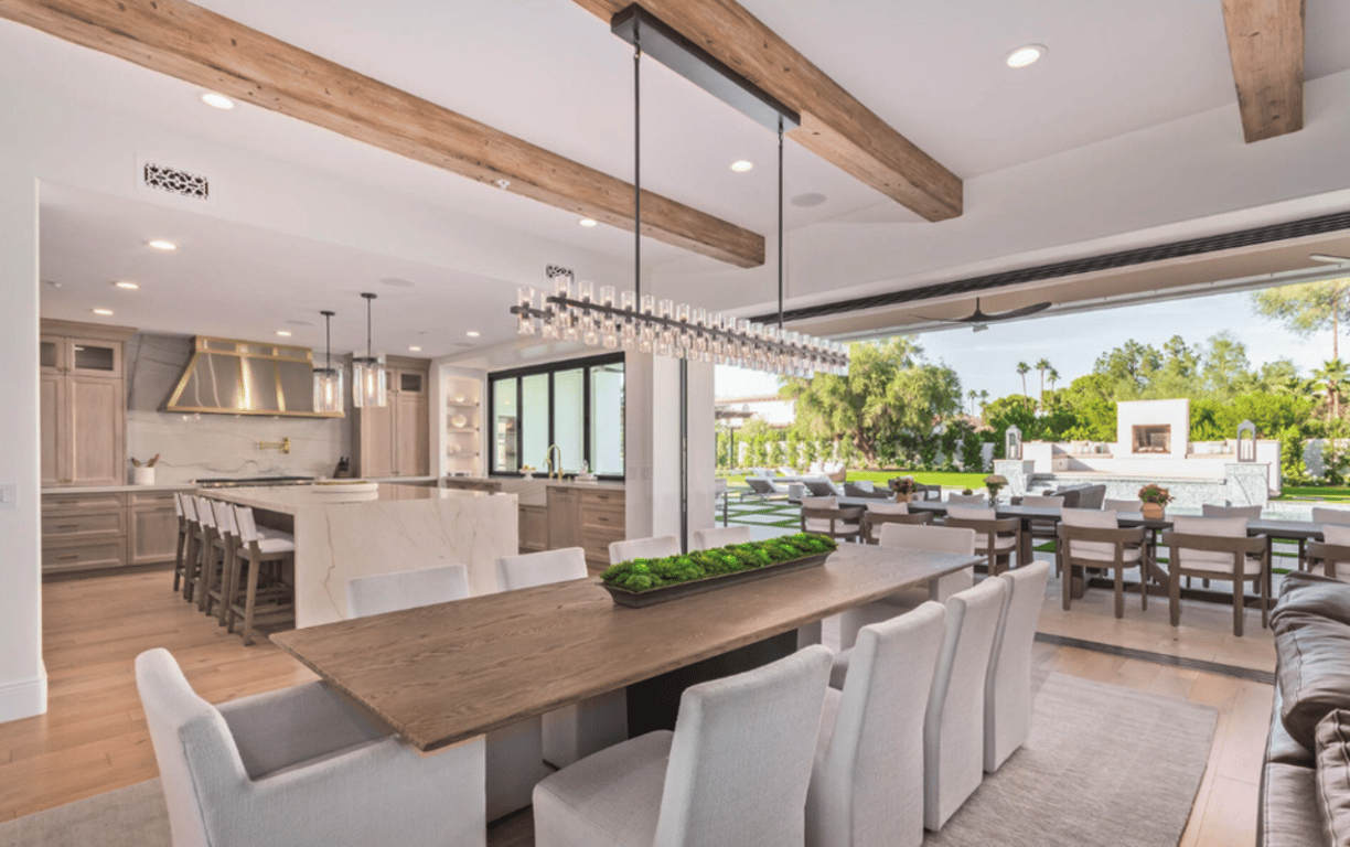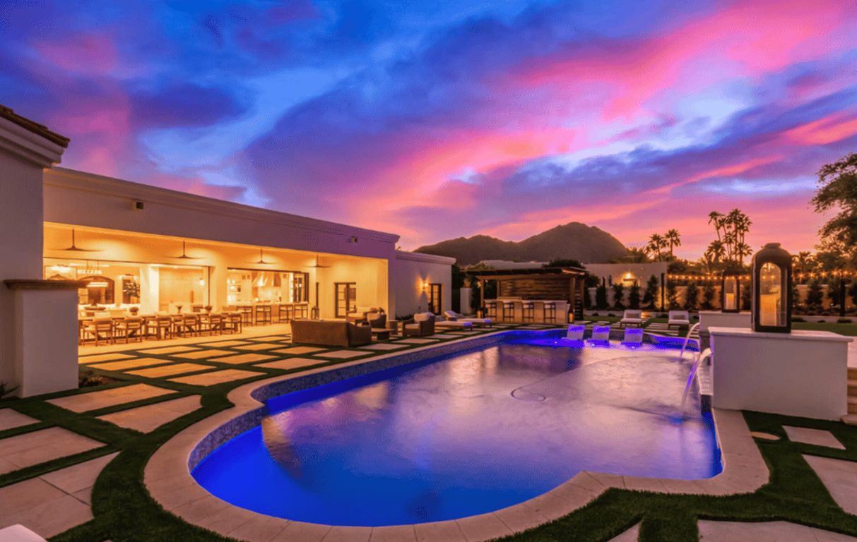 Будинок має п'ять спалень і п'ять ванних кімнат на площині у 600 квадратних метрів. На задньому дворі є додаткові переваги: величезний басейн із вбудованим водоспадом, майданчик для гриля, поле для гри в гольф і майданчик для боче.