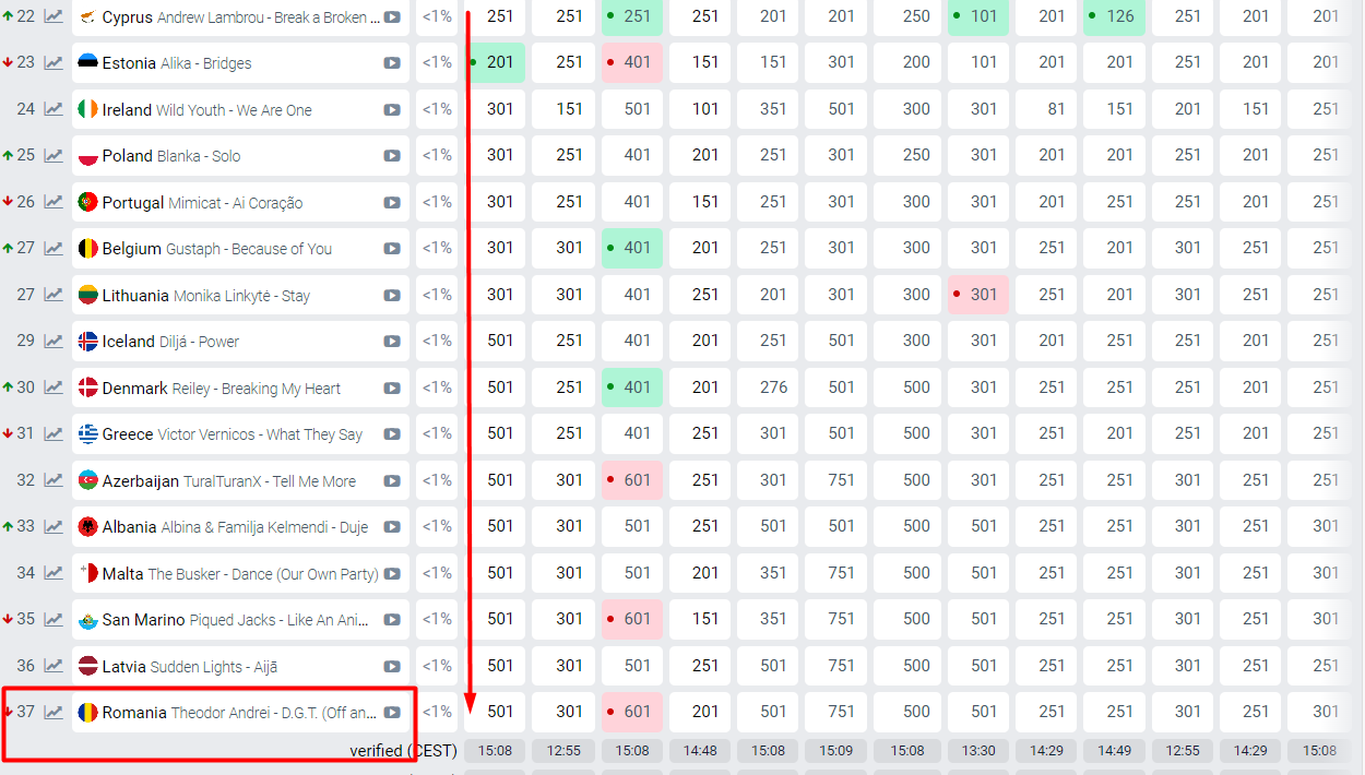 Букмекерські контори не ставлять на перемогу Теодора. Ба більше — в хлопця не має шансів, згідно з прогнозами, на вихід у фінал. Серед всіх 37 конкурсантів 18-річний румун займає останнє місце. В Теодора коефіцієнт складає 501. В той час, як в українського гурту TVORCHI він 11 (третє місце), а у фаворитки Loreen зі Швеції 1.62.
