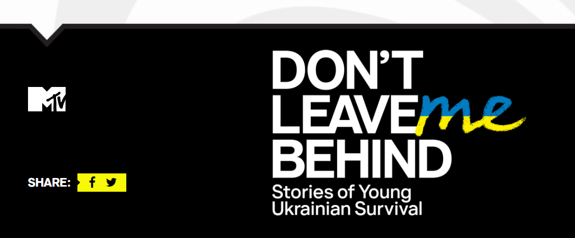 Документальний фільм "Не залишай мене позаду: Історії виживання молодих українців" (Don’t Leave Me Behind: Stories of Young Ukrainian Survival) вийде в ефір найвідомішого музичного телеканалу світу 21 лютого.