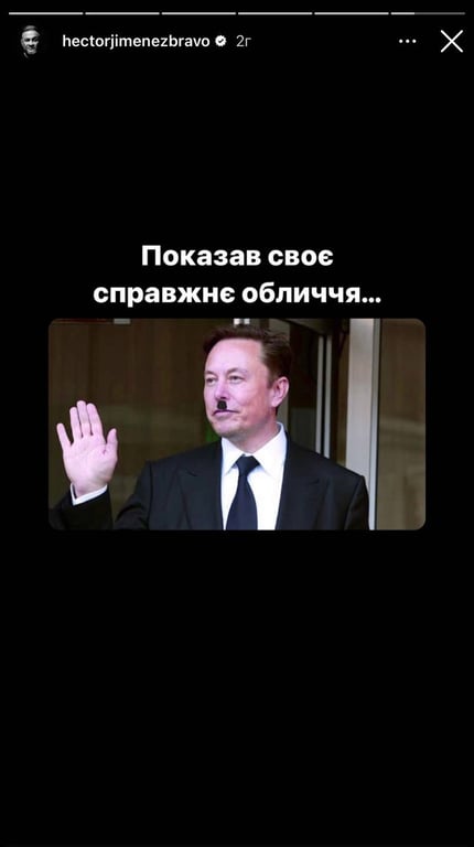 В образі Гітлера Ілона Маска зобразив зірковий кухар Ектор Хіменес-Браво. Після образливого мема з президентом Зеленським Ектор опублікував сторіс, в яких назвав мільярдера проросійським, а його вчинок нерозумним.