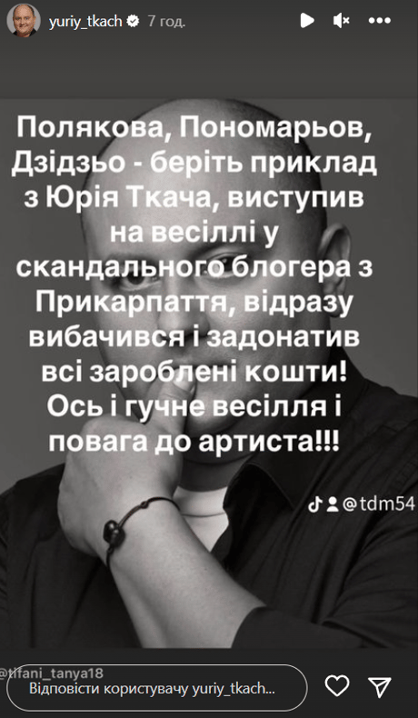 Ткач натякнув Поляковій та іншим артистам віддати гонорари зі скандального весілля