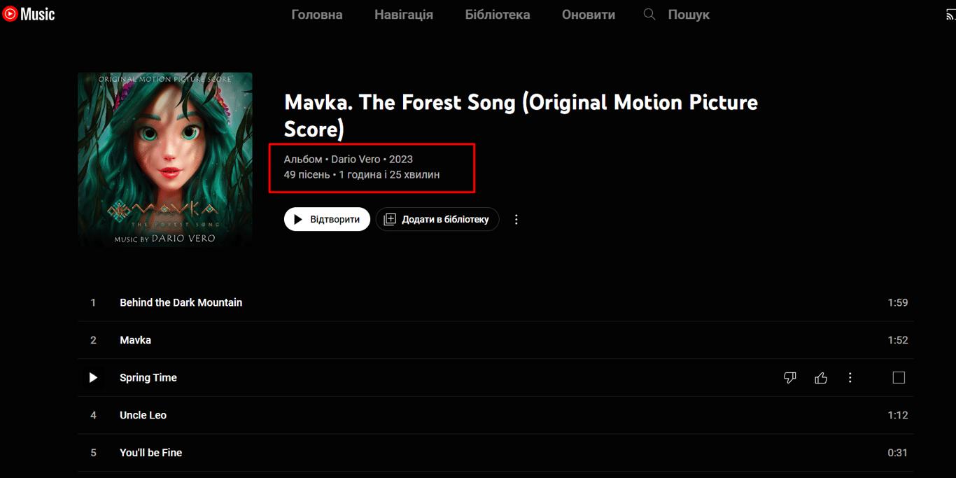 Українська анімаційна стрічка "Мавка. Лісова пісня" стала найуспішнішим фільмом за показниками касових зборів в нашій країні за часи незалежності. І поки мультфільм показують у різних куточках світу, його творці презентували 49 треків оркестрової музики, які звучать у стрічці.