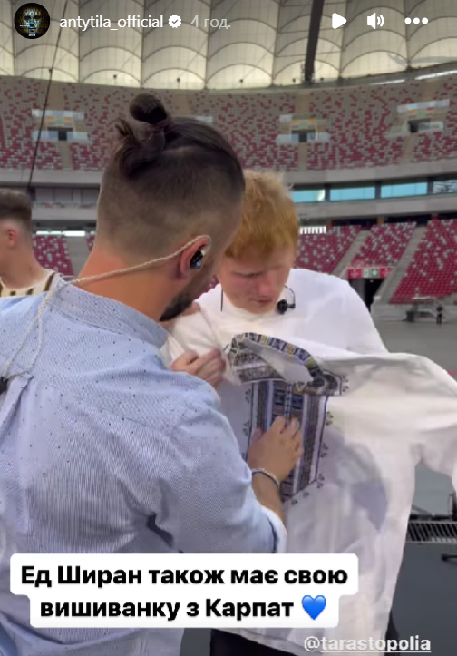 Також фронтмен гурту Тарас Тополя пригадав, що подарував вишиванку британському співаку Еду Ширану.