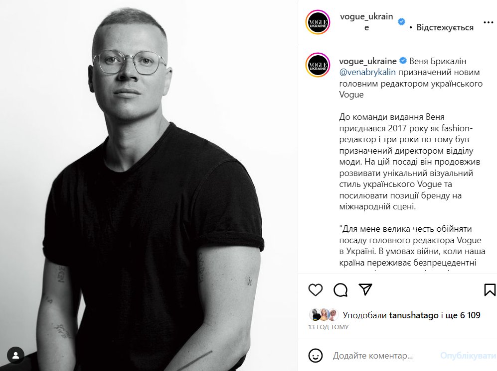 В українській редакції видання Vogue зміни. Глянець очолив Веня Брикалін, який працює в компанії вже не один рік.