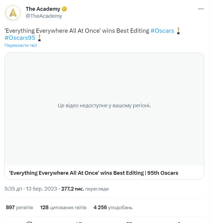 Цікавий факт — подивитися відео на офіційному акаунті премії у Twitter в Україні неможливо.