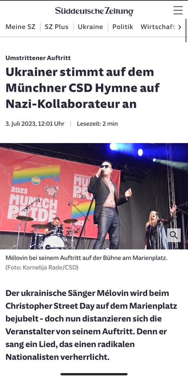 Напередодні співак MELOVIN виступив на фестивалі CBS Munich, який проходив в рамках прайду в Мюнхені (Німеччина). На сцені молодий артист виконав два рядки із гімну повстанської української армії "Батько наш Бандера". Організатори жорстко прокоментували ініціативу українського співака. Менеджмент MELOVIN також не став мовчати.