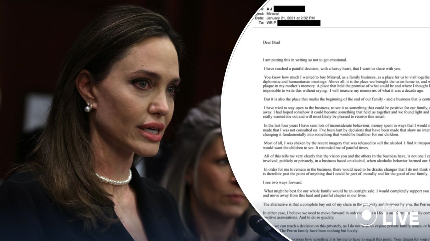 В листі, відправленому електронною поштою, Джолі веде розмову про спільний бізнес колишньої парочки — французької виноробні Chateau Miraval. Її подружжя придбало 2008 року за 60 мільйонів доларів. Анджеліна та Бред ніяк не можуть поділити бізнес. Проте у листі Джолі показала своє бачення з цього питання.
