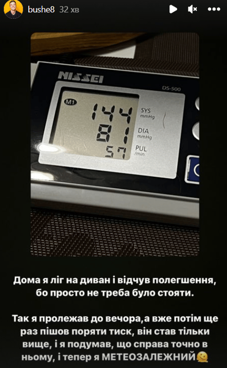 "Відкриваю очі і розумію, що щось не так. Враження, наче сильно залежав руку. Розумію, що однаково не відчуваю дві руки, але рухати ними можу. Встаю, ноги ватні. У вбиральні розумію, ватні не тільки ноги", — зізнався Буше.