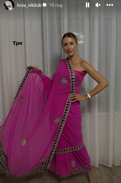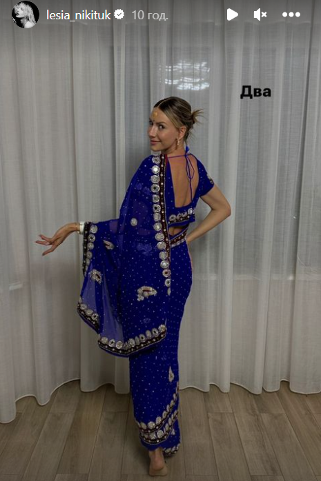 Також Леся влаштувала примірку національного жіночого одягу Індії. На одному образі шоувумен не зупинилась. Показала шанувальникам одразу три сарі.