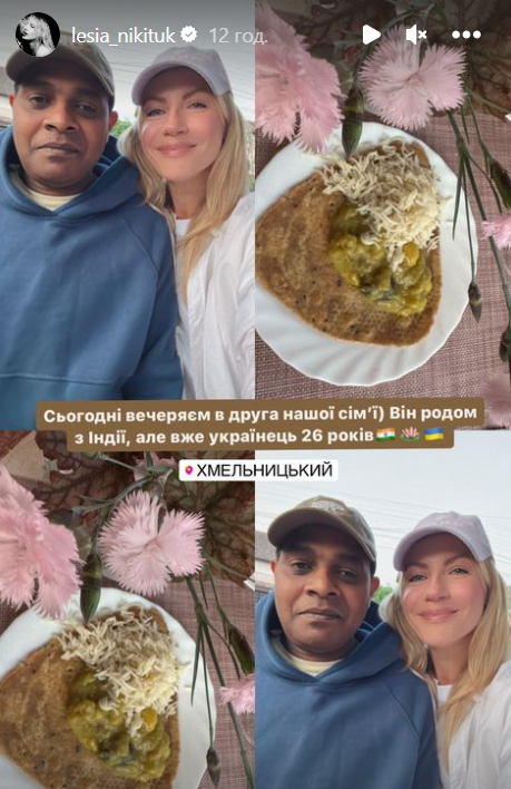 Шоувумен Леся Нікітюк проводить час разом з родиною в Хмельницькому. Телезірка публікує фото та відео не тільки з рідними, яких вже показувала у соцмережах. Так, наприклад, Леся познайомила підписників з другом сім'ї родом з Індії та влаштувала примірку сарі.
