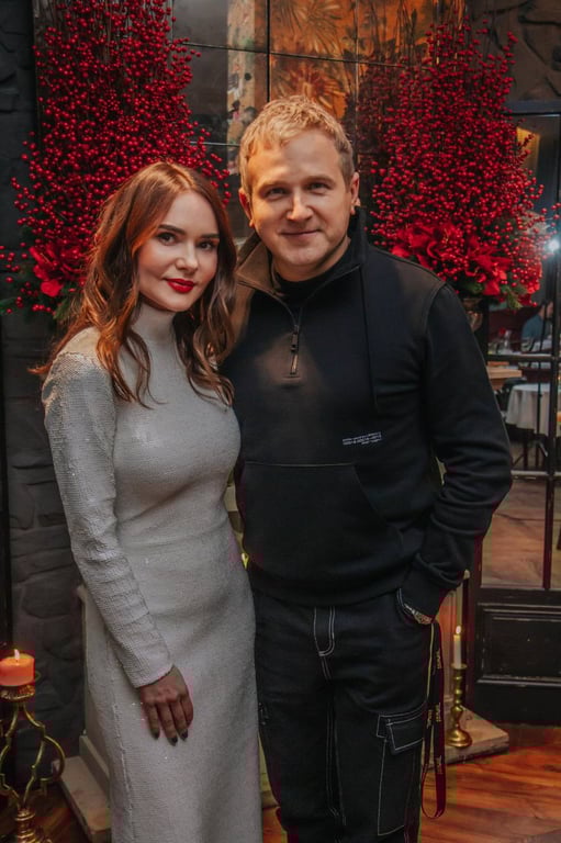 На вечір завітали актор Тарас Цимбалюк, шоумен Юрій Горбунов, дизайнерка Катя Сільченко, режисерка Олена Вінярська, продюсер Олексій Гладушевський та інші друзі акторів.
