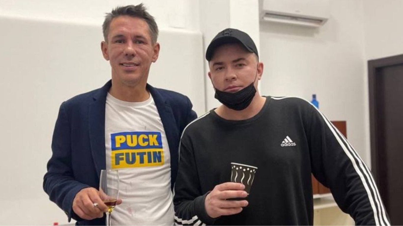 За словами актора, який не раз потрапляв в сексуальні скандали, він не бачився з Данилком 12 років. Тож Панін не тільки відривався у глядацькій залі, але й вийшов на сцену, зробив невелику промову, потанцював, а потім ще й фото з Андрієм Данилком вже не в образі Сердючки зробив у гримерці. Весь вечір актор був у креативній антипутінській футболці.
