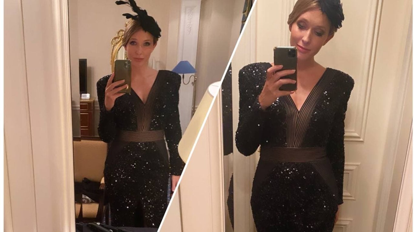 За два місяці після пологів Осадча продемонструвала струнку фігуру та з'явилася на публіці у приголомшливій приталеній сукні. Не забула ведуча і про невід'ємний аксесуар у своєму образі - капелюх.