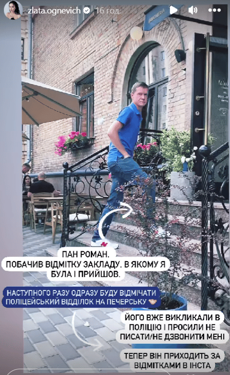 Напередодні співачка Злата Огнєвіч написала заяву до поліції на переслідувача на ім'я Роман. Після цього зі сталкером провели бесіду поліціянти в одному з відділень у столиці. Втім, це не зупинило переслідувача.