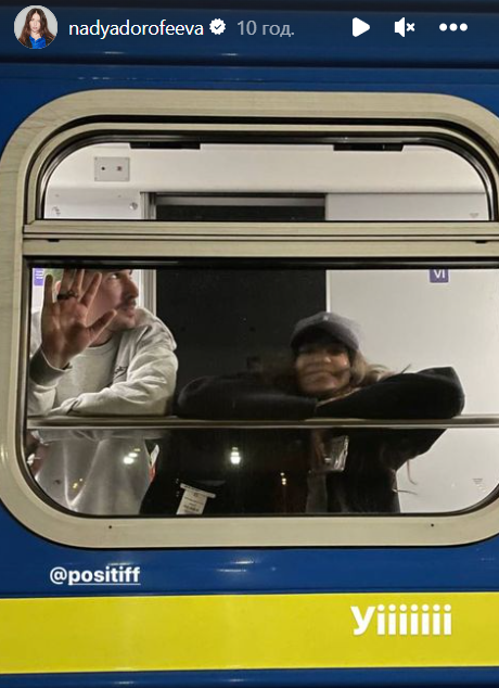У своїх соцмережах Дорофєєва опублікувала фото з Позитивом. На ньому вони позують в вагоні одного з потягів Укрзалізниці.